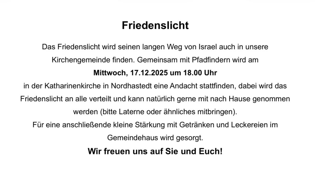 Das Friedenslicht kommt am 17.12.2025